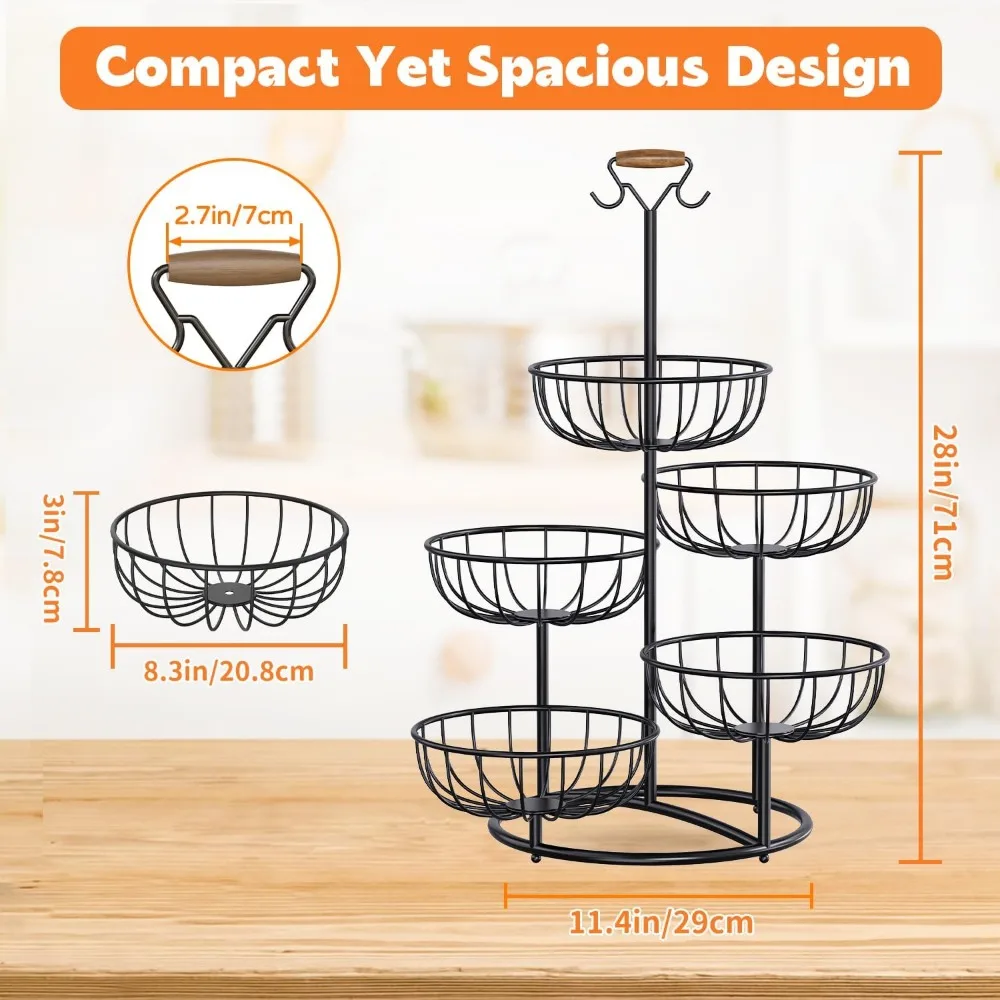Maximize your kitchen storage with this stylish and space-saving 5-tier fruit basket tower stand. Designed to keep your fruits and vegetables fresh and organized, this vertical storage solution helps declutter countertops while adding a modern touch to your home.
